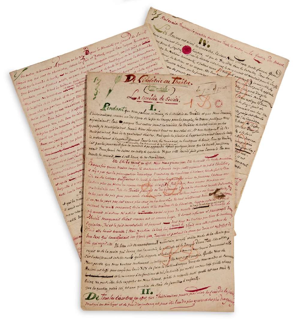 MANUSCRIT autographe signé «J. Barbey d'Aurevilly», De l'idolâtrie au Théâtre (2ème article). La comédie de société, [1858] | 3 pages infol.