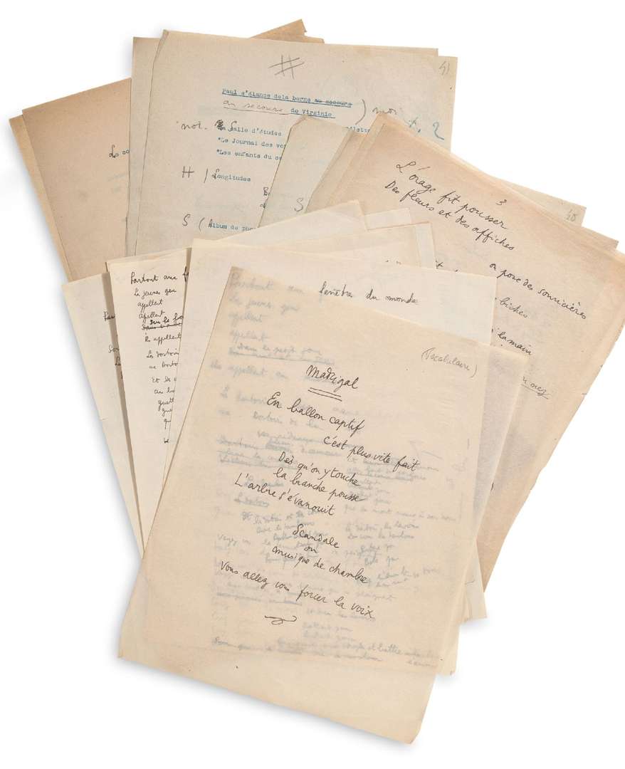 Madrigal (1 page in-4) : «En ballon captif / c'est plus vite fait»... (Œuvres poétiques, Pléiade, p. 346).