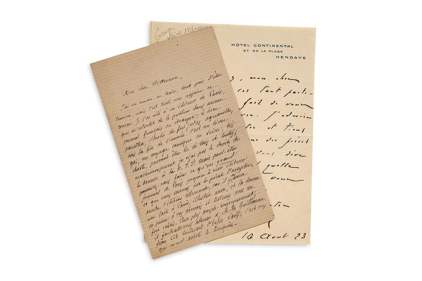 On joint une L.A.S. de Georges COURTELINE à Henry Bernstein : «J'admire tout votre théâtre et tiens le Secret pour une des pièces du siècle» (10 août 1923)