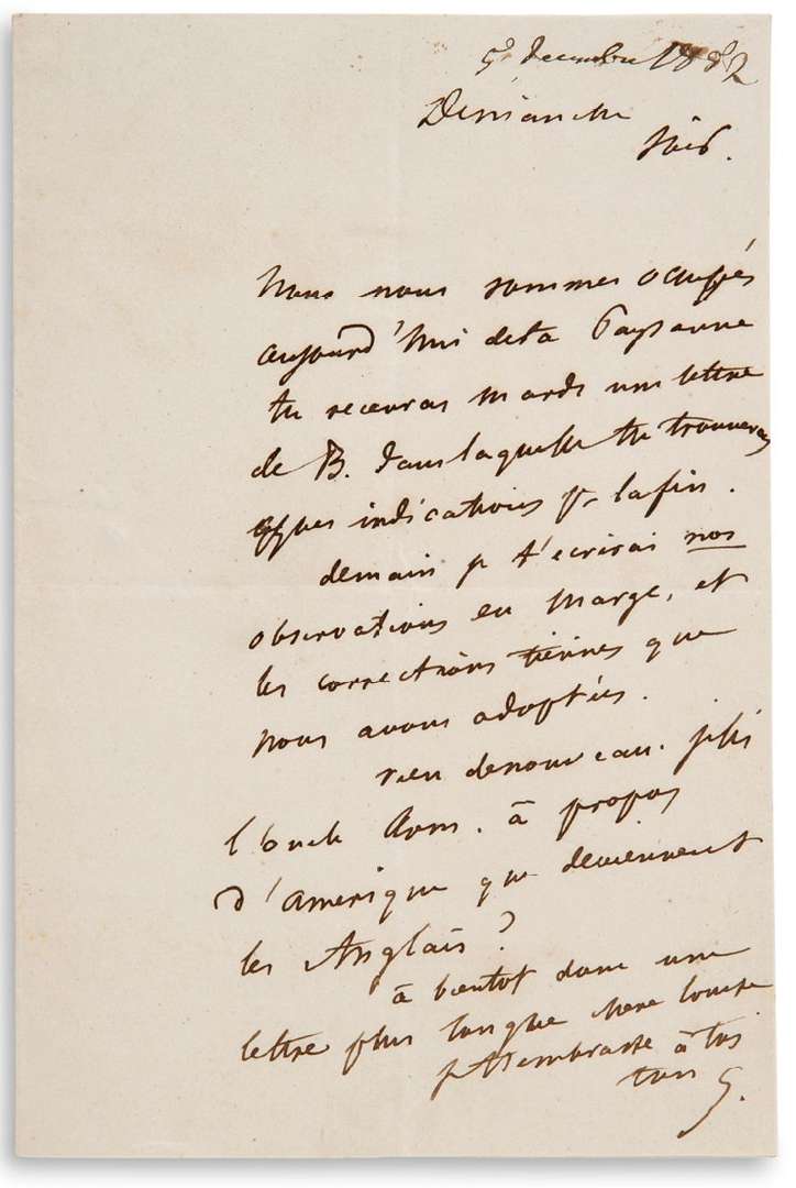 L.A.S. «ton G.», Dimanche soir [«5 décembre 1852» a noté Louise Colet], à Louise COLET | 1 page in-8, enveloppe.