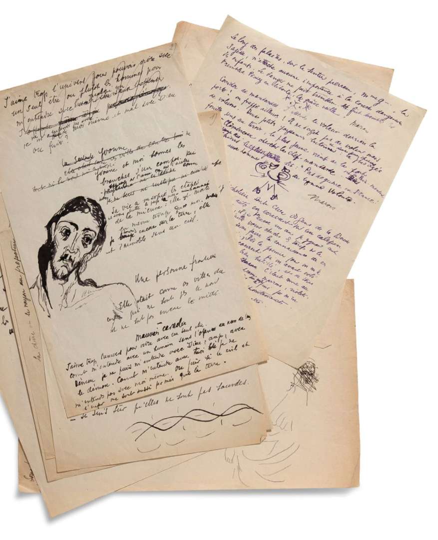 12 MANUSCRITS autographes de notes, brouillons et ébauches de textes, certains avec dessins | 14 pages formats divers, la plupart in-4.
