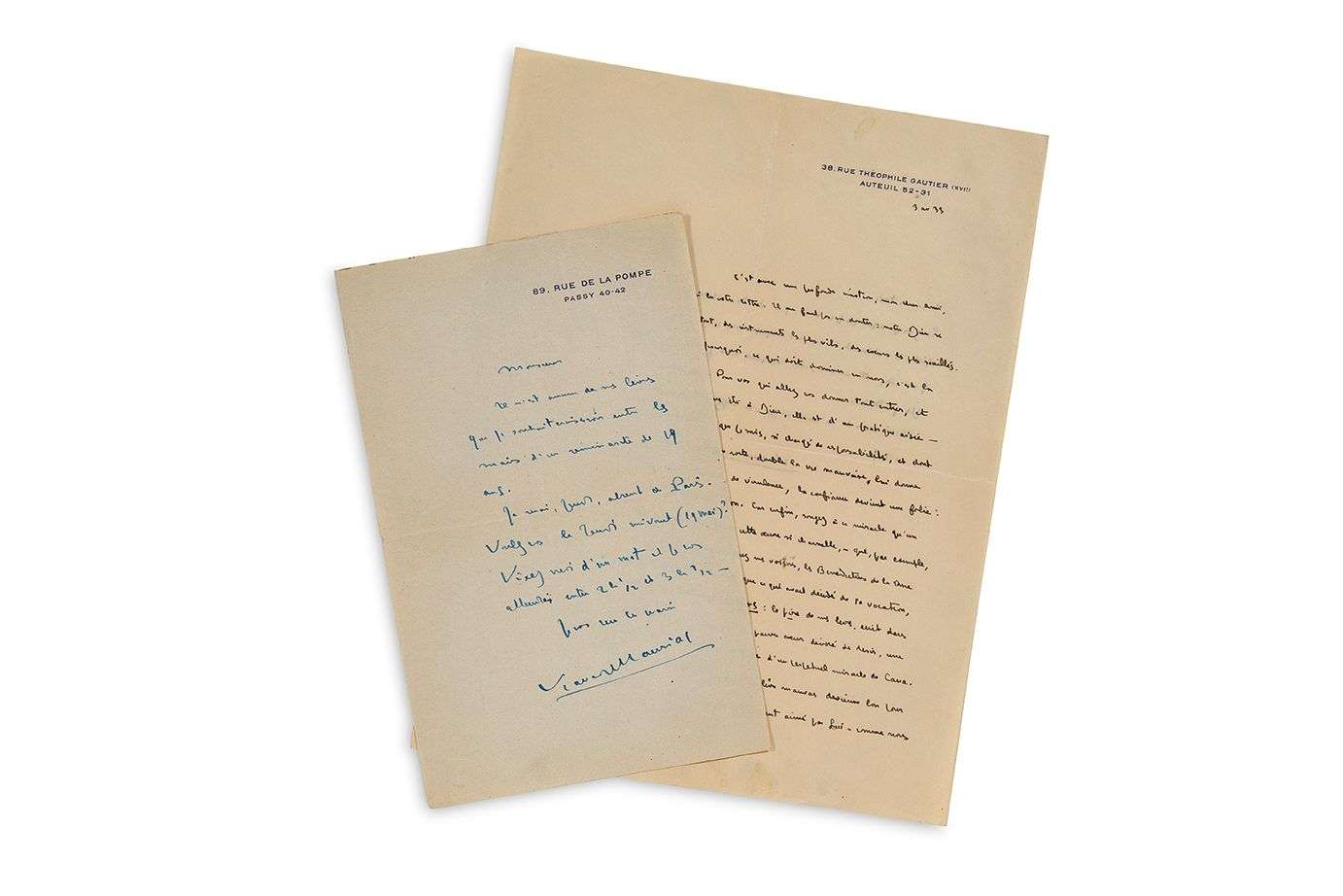 On joint une L.A.S. pour un rendez-vous (1 page in-8) | plus une copie par l'abbé Morel d'un texte de Mauriac
