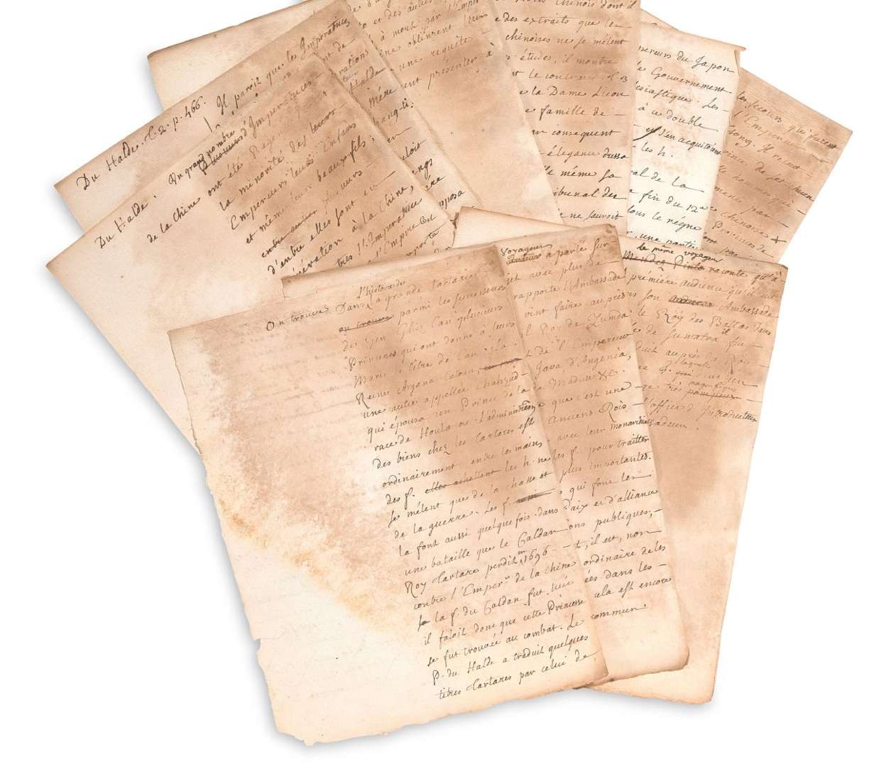 MANUSCRIT autographe, De la gr. Tartarie de la Chine et du Japon | 12 pages inégalement remplies sur 10 feuillets in-4, sous chemise titrée par Mme Dupin (mouillures).