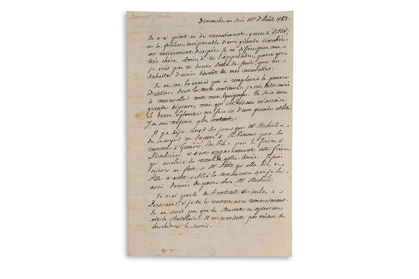 L.A.S. «Bonnet», 10 août 1783, à sa sœur Susanne, Mme Jean-Jacques