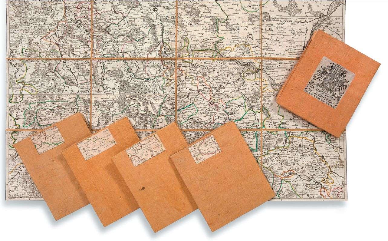 PROVENANCE Collection privée | très certainement le vicomte de Rochambeau (Donatien-Marie-Joseph de Vimeure, (1755-1813) (vignette ex-libris aux armes de la famille : d'azur, au chevron d'or, accompagné de trois molettes du même, contrecollée sur le jute de la première carte).