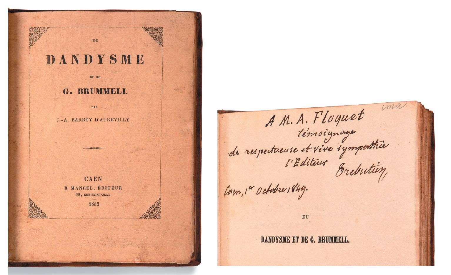 Édition originale non rognée, éditée par Guillaume-Stanislas Trebutien (1800-1870) enrichi d'un envoi autographe à l'encre brune signé de la part de ce dernier à M. A. Floquet, daté du 1er octobre 1849.