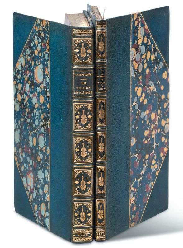 L'on joint : ADELINE Jules, La Légende du Violon de Faïence. Huit compositions gravées à l'eau-forte par l'auteur. Paris, Conquet, 1895. In-8, 46pp. Même reliure. Titre-frontispice gravé avec portrait de Champfleury.