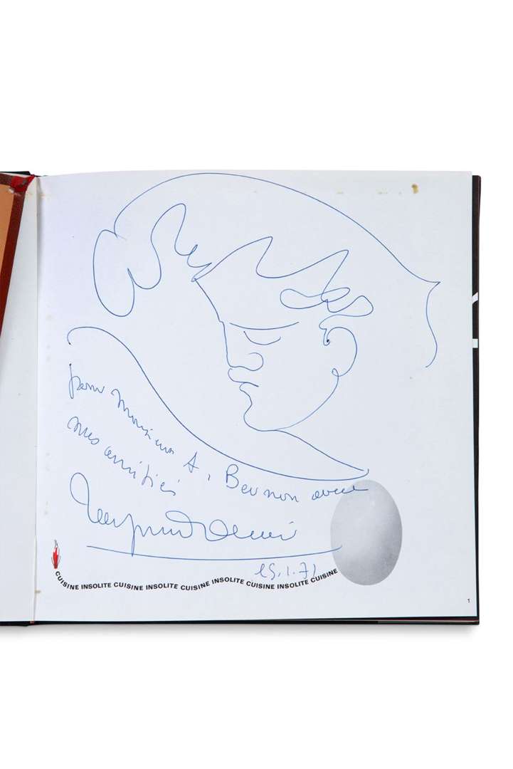 Exemplaire enrichi d'un bel envoi autographe signé avec dessin dans le goût de Jean Cocteau, au stylo bleu par l'auteur, adressé à