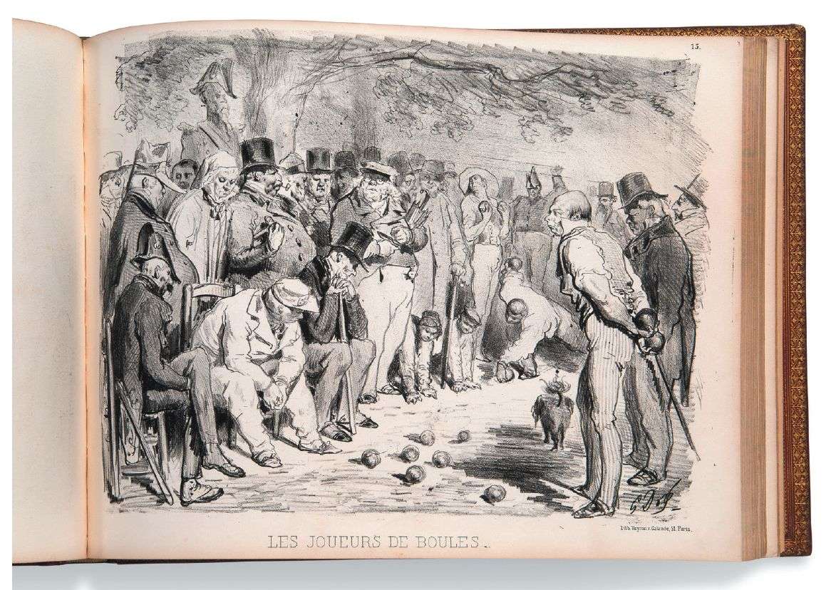 Belle suite dans laquelle Doré nous montre les publics de l'opéra italien, de la Comédie-Française, du Jardin des plantes, du théâtre de Guignol, du cirque, des joueurs de boule, de l'amphithéâtre de l'École de médecine, etc. Contient la couverture imprimée tenant lieu de titre.