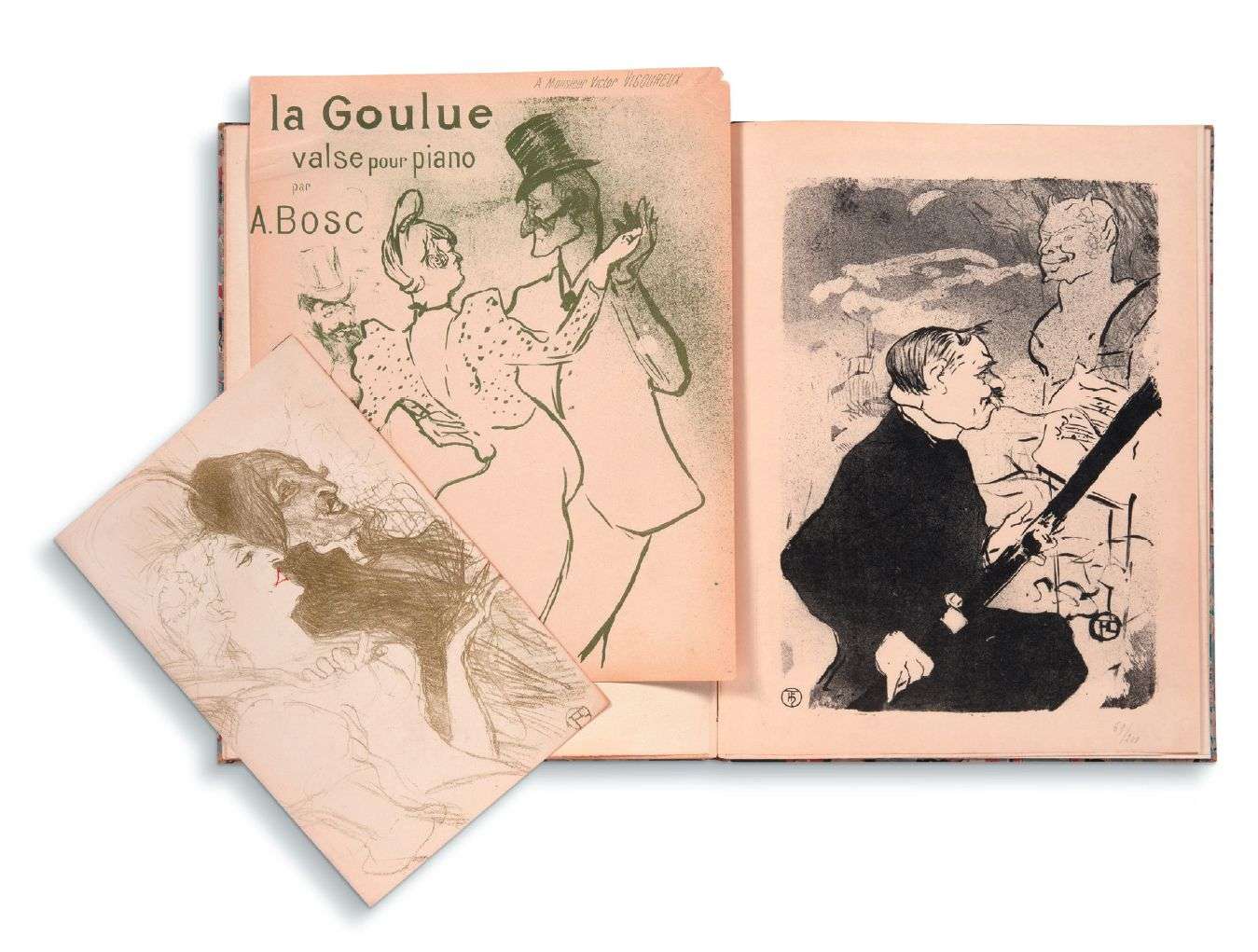 La Goulue. Avec le texte lithographié pour édition de la partition musicale, 1894 édité par A.Bosc. (W. 65) 31 x 24,5 cm, légèrement jaunie, quelque mouillures, petits manques et accidents dans les bords.