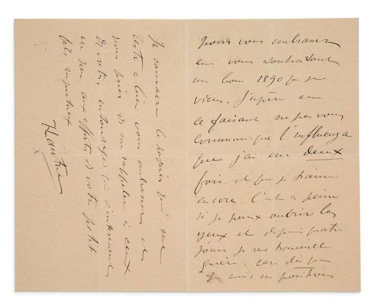 S.l., [1890]. 4 pages in-12 à l'encre (pliure horizontale et taches).