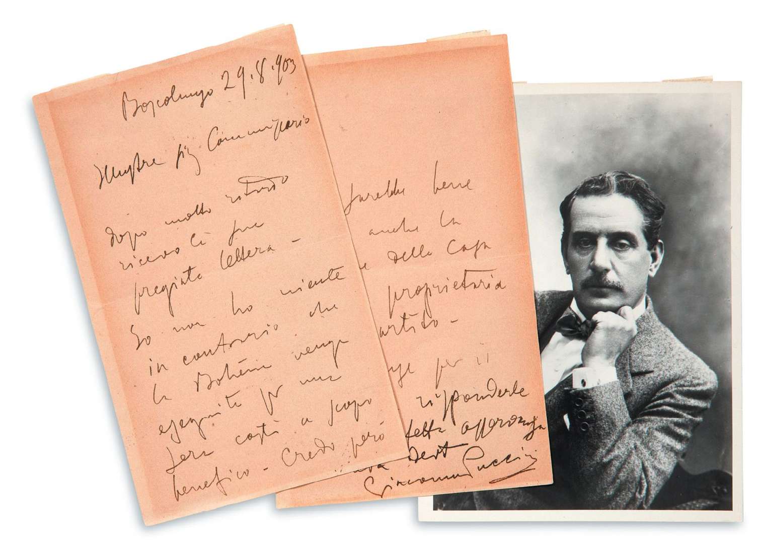 L.A.S., Boscolungo 29 août 1903, à un commissaire | 2 pages in-8 (traces d'encadrement sur les bords), avec photo jointe | en italien.