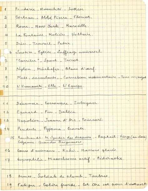 7 “Carrière”. - Sport. - Tricot. [...] 13 Napoléon. - Jeanne d'Arc. - Poincaré.