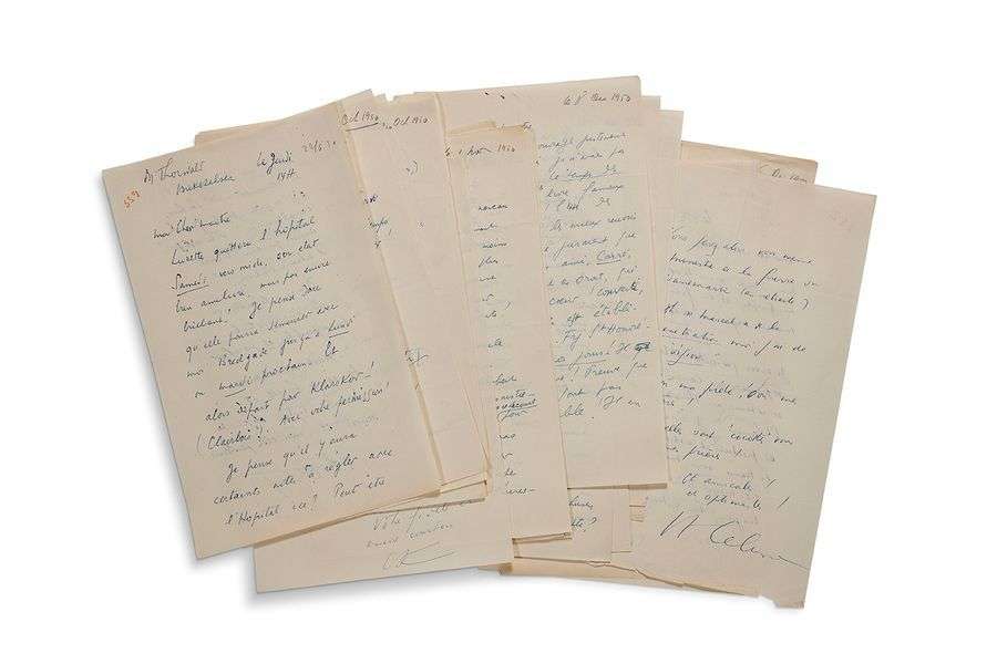 23 lettres autographes signées à son avocat Thorvald, MIKKELSEN S.l., juin-décembre 1950, 36 pages in-4 au stylo à bille, lettres foliotées au crayon rouge