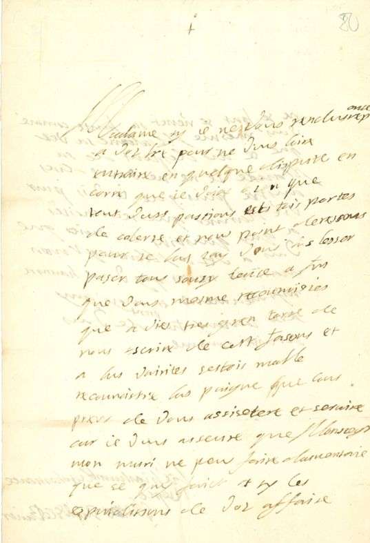 Elle ne veut pas l'entraîner «en quelque dispute encorre», la voyant en colère | elle avait «tres gran torre de nous escrire de cest fasons et a las vairites sestois malle reconnoistre las paigne que lont pryst de vous assisetere et servire car je vous asseure que Monsiegr mon mari ne peu faire dasventaje que ce quy faict»...