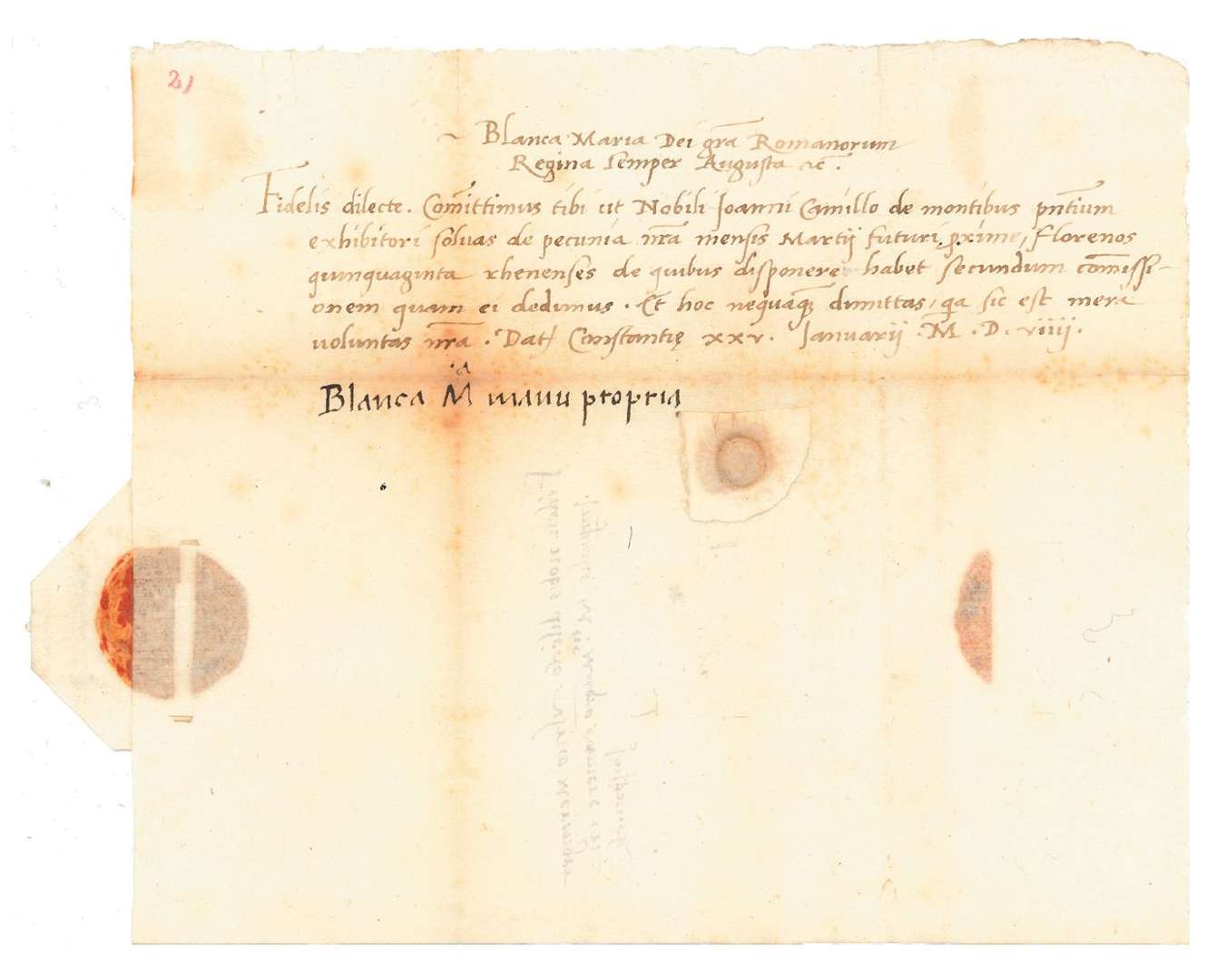 L.S. «Blanca Ma manu propria», Constance 25 janvier 1509, à Ulric