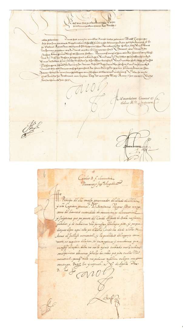 Innsbruck 5 août 1552, en espagnol, à Fernando de Gonzaga, prince de Molfetto, et capitaine général de l'état de Milan, en faveur du comte Alfonso de Sala.