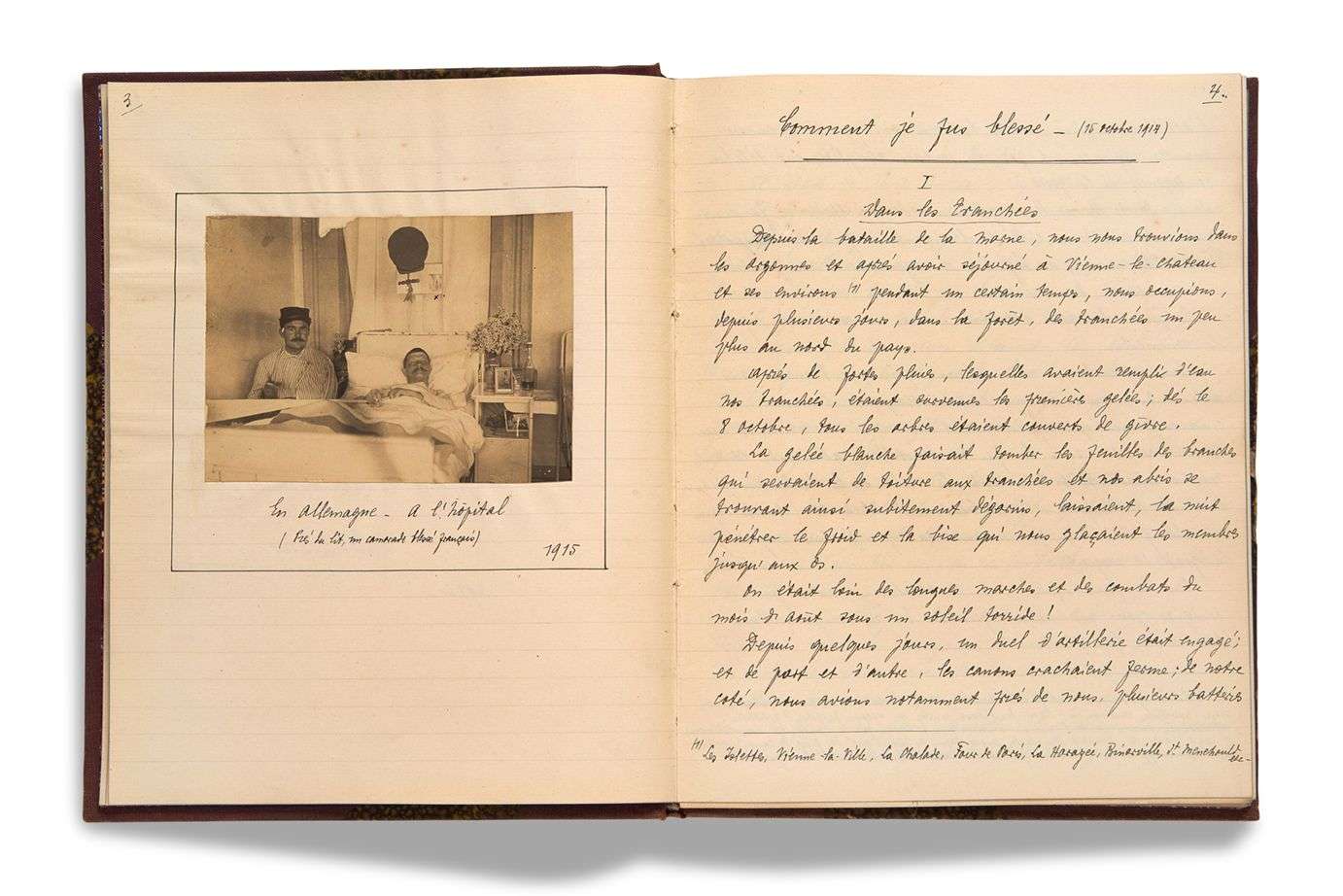 Emouvant cahier comprenant ses souvenirs de tranchées ainsi que de nombreux poèmes et quelques photographies.