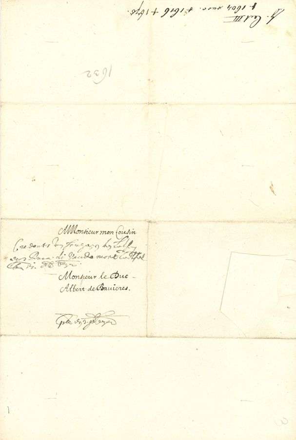 L.S. avec compliment autographe, Nancy 17 octobre 1632, au duc ALBERT VI de BAVIÈRE | 1 page in-fol., adresse avec sceau aux armes sous papier.