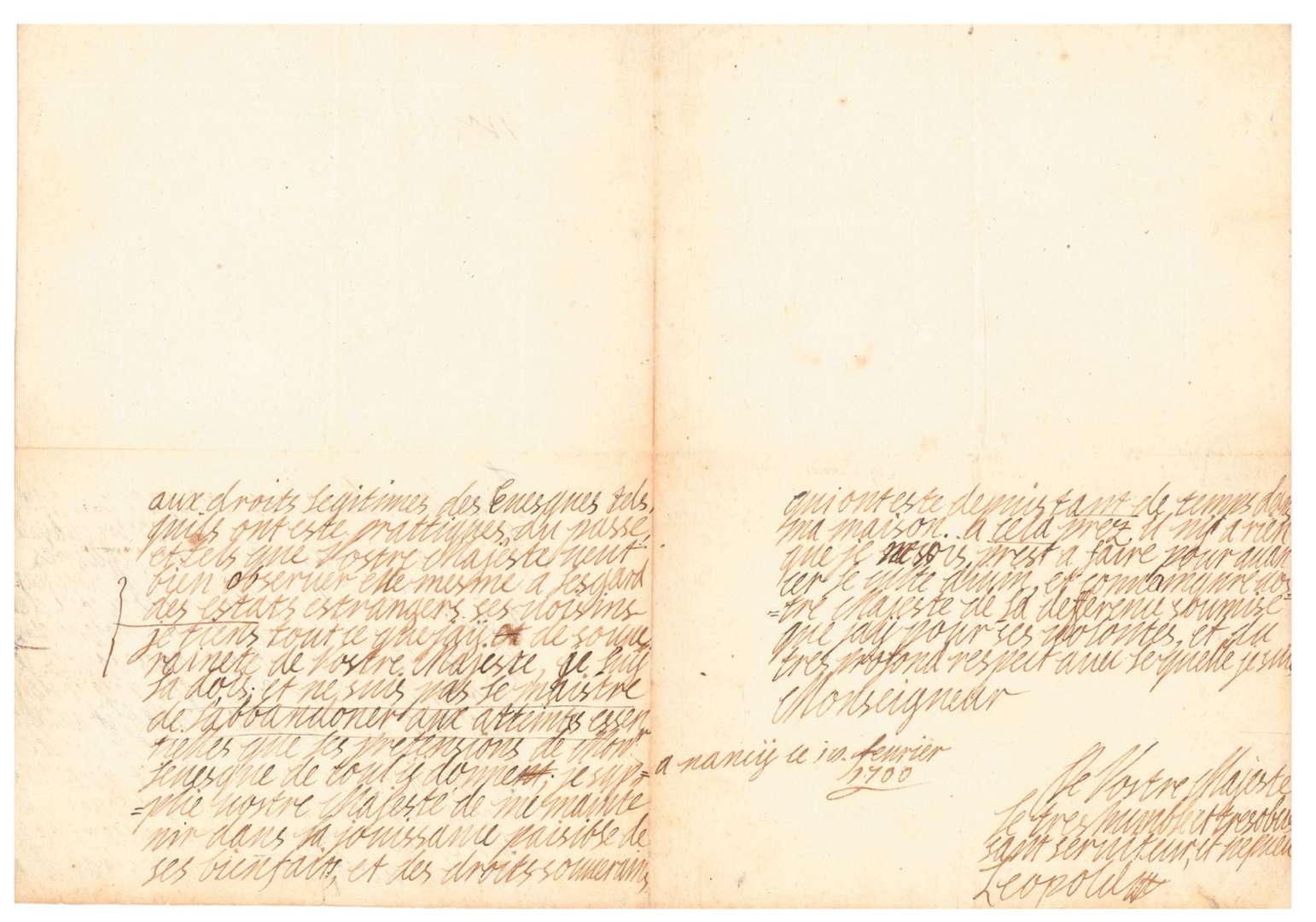 L.A.S., Nancy 19 février 1700, à Monseigneur [LOUIS XIV] | 3 pages in-fol.