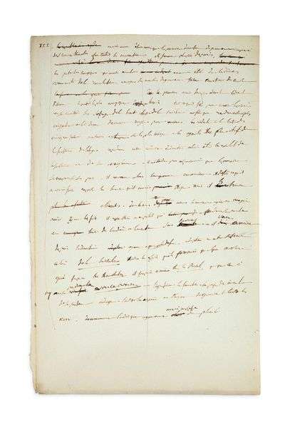 MANUSCRIT AUTOGRAPHE, III | 1 page in fol. sur papier vergé filigrané au léopard de la manufacture anglaise Budgen & Wilmott.