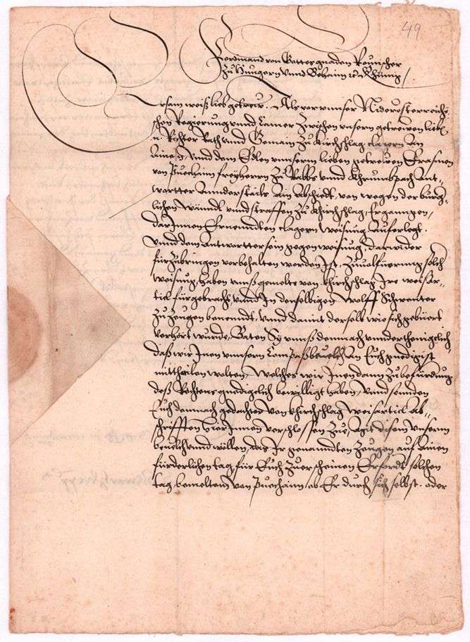Wier. On joint une P.S. comme archiduc d'Autriche, Innsbruck 30 juillet 1523 (1 page grand in-fol. avec signatures de chancellerie, sceau sous papier au dos, en allemand) | et une pièce en son nom signée par des secrétaires et adressée au bourgmestre de Neustadt, Vienne 17 janvier 1558 (2 p. in-fol., adresse avec sceau sous papier, en allemand).