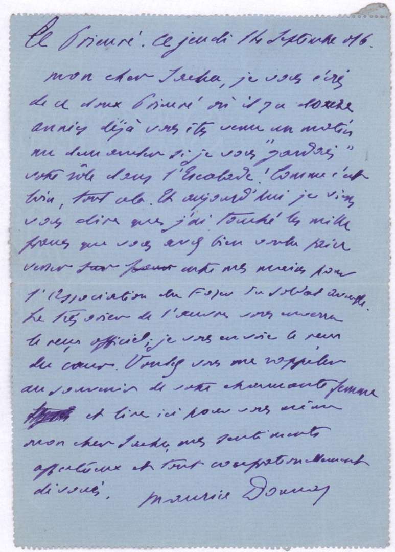 1 page In-8, papier bleu.