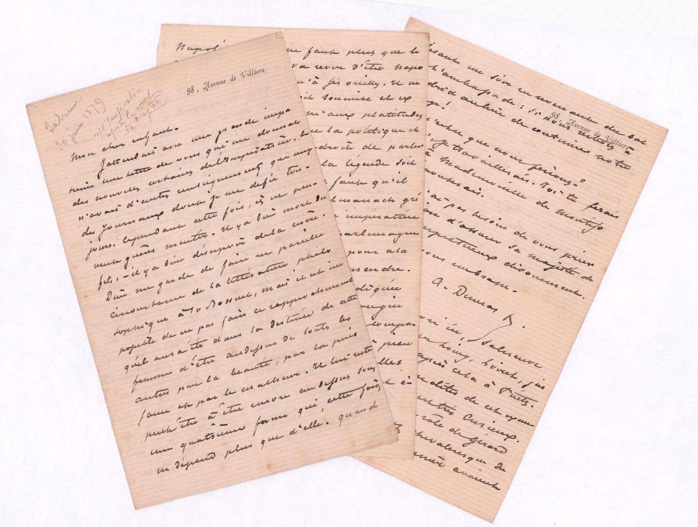 7 pages et demi in- 12 à en-tête 98 avenue de Villiers.