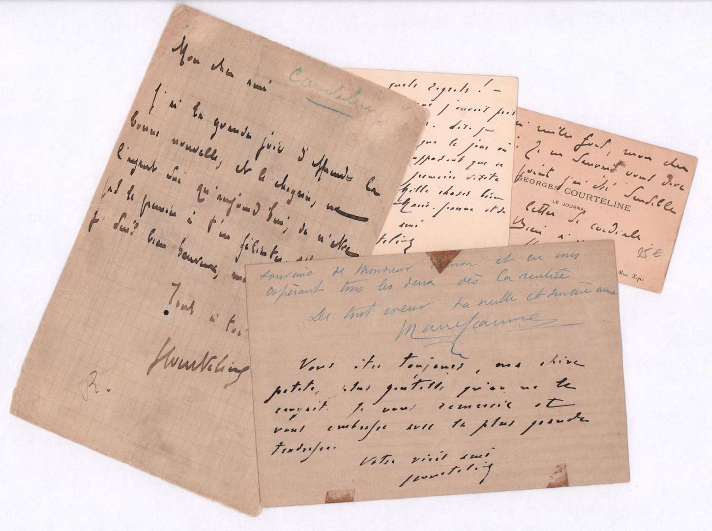 Ensemble de quatre lettres et cartes autographes signées de Georges COURTELINE- divers formats- déchirures