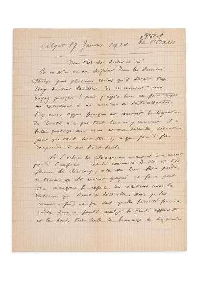 L.A.S., Alger 17 janvier 1920, à un « très-cher docteur et ami » [Gustave LE BON] | 1 page et demie in-4.