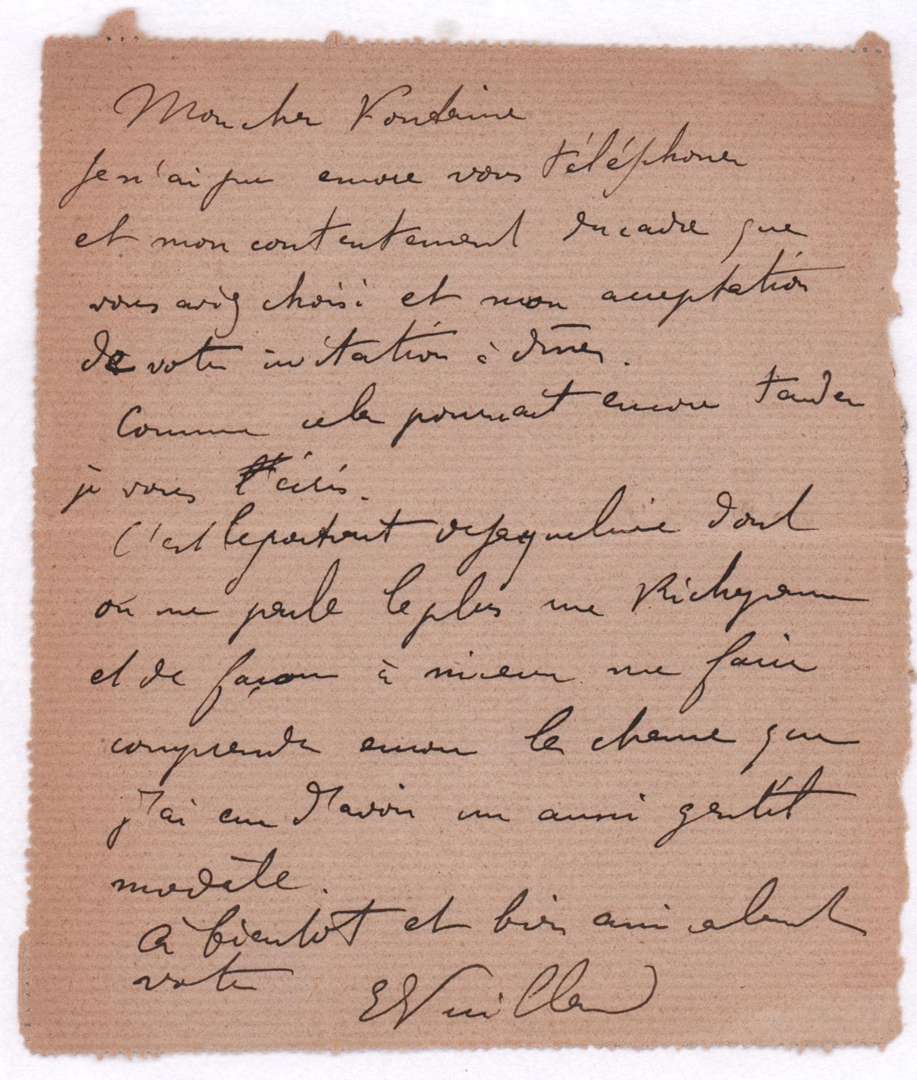 62927 VUILLARD Edouard (1868-1940). L.A.S. « EVuillard », [Paris 16 avril