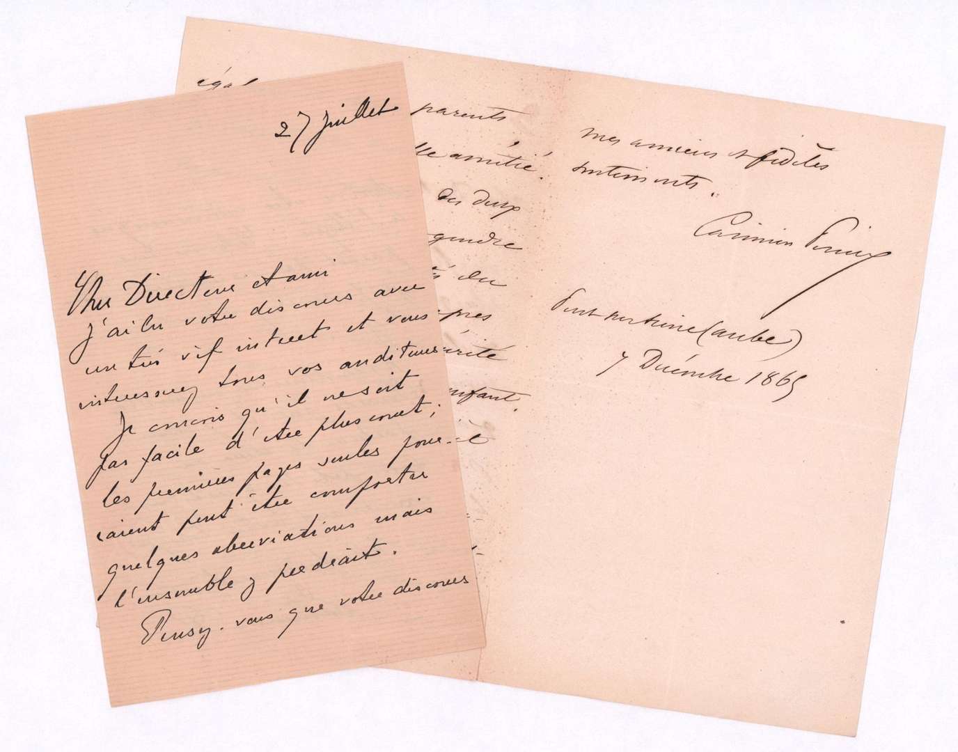 Lettre autographe signée "Casimir-Perrier", 9 décembre 1865 à un docteur,Lettre autographe signée "Casimir-Perrier" 27 juillet.