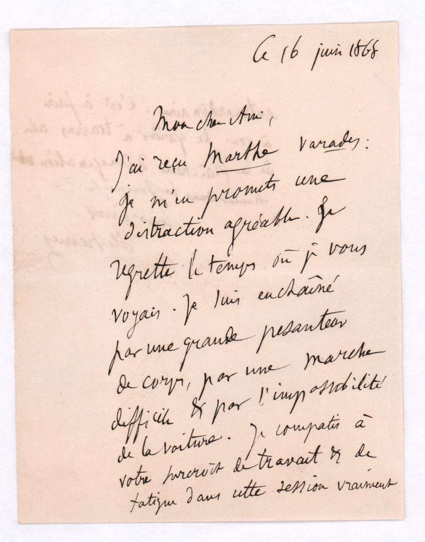 Lettre autographe signée, le 16 juin 1868.
