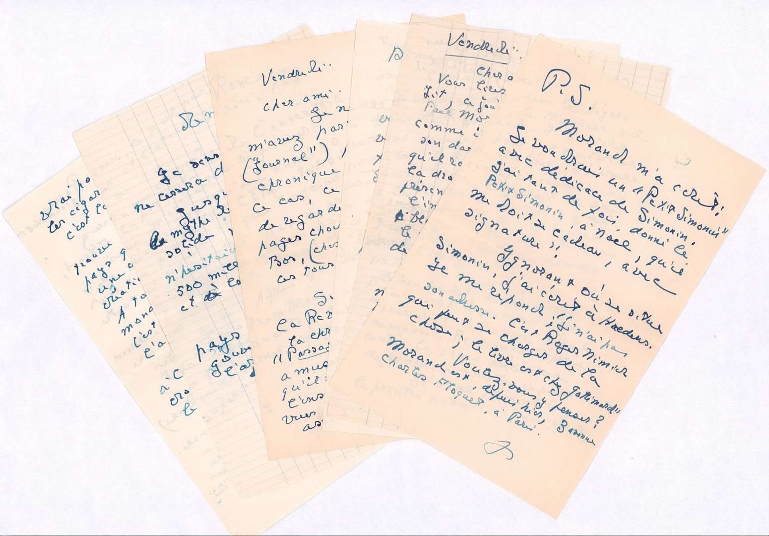 Correspondance de 19 lettres autographes la plupart signées adressées à Roger Nimier.de Jacques CHARDONNE à Roger NIMIER, avec enveloppes, lettres in-4.