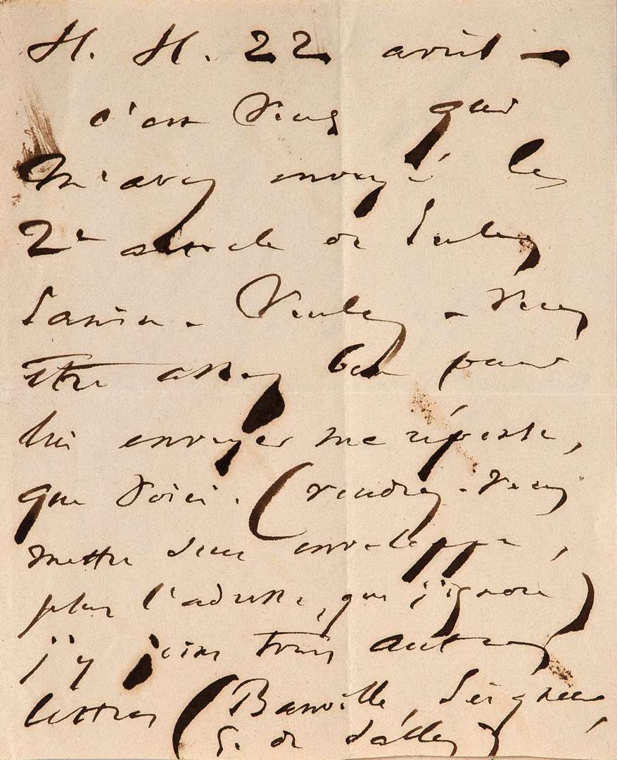 LAS "V.H", du 22 avril 1866, à H.H Guernesey, à Monsieur Emile Allix, avec enveloppe, 2 pages in-12.