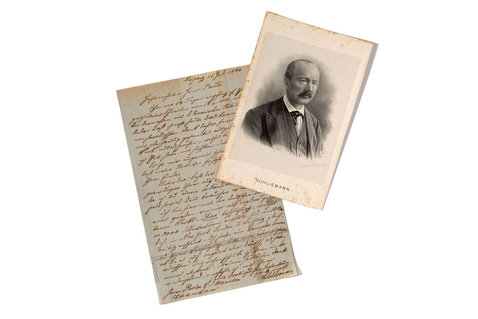 L.A.S. de Heinrich Schliemann, Leipzig 25 juillet 1880, 1 page in-8, en allemand.