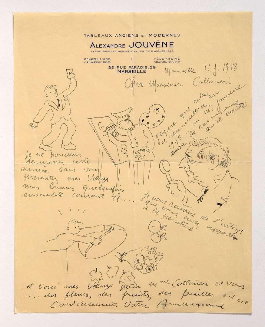 L.A.S de "Votre Ambrogiani", Marseille 1er février 1948, enrichie de 4 croquis, 1 page in-4, sur papier en-tête de "Alexandre Jouvène".