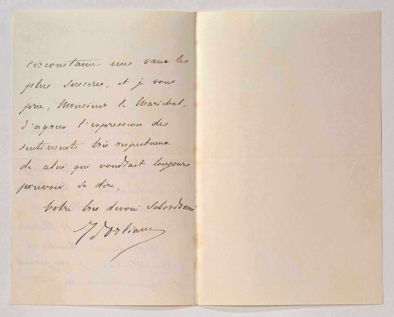 L.A.S de M. d'Orléans, 25 novembre 1886, adressée à Monsieur le Maréchal Mac Mahon, 2 pages grand in-12, papier avec filigrane Delta Mill Fine.
