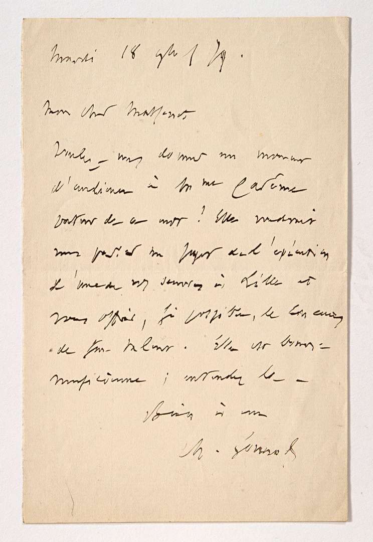 LAS signé "Ch. Gounod", Mardi 18 novembre, adressée à Massenet, 1 page in-12.