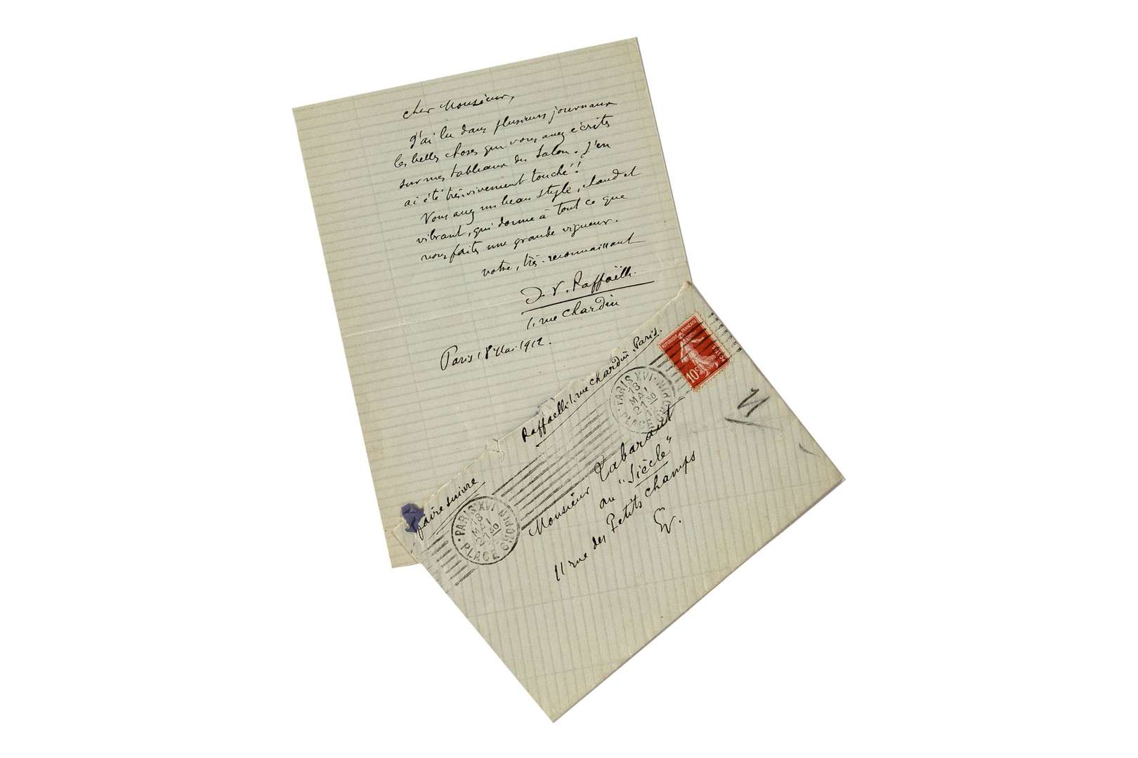 L.A.S, Paris 18 mai 1912, au critique d'Art Adolphe Tabarant, 1 page in-8, enveloppe (adressée au journal "Le Siècle").