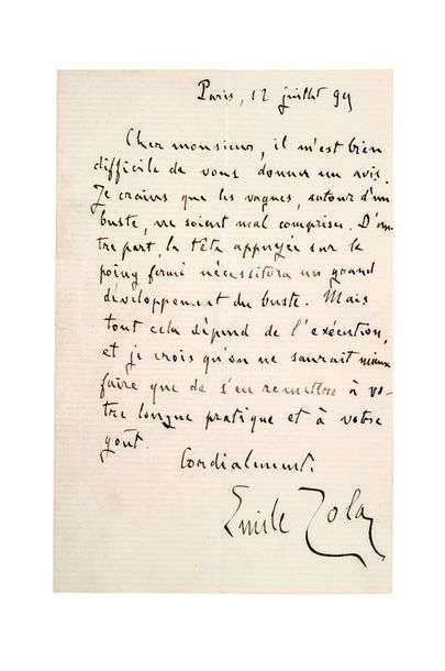Lettre autographe signée [adressée à un sculpteur], Paris, 12 juillet 1899,