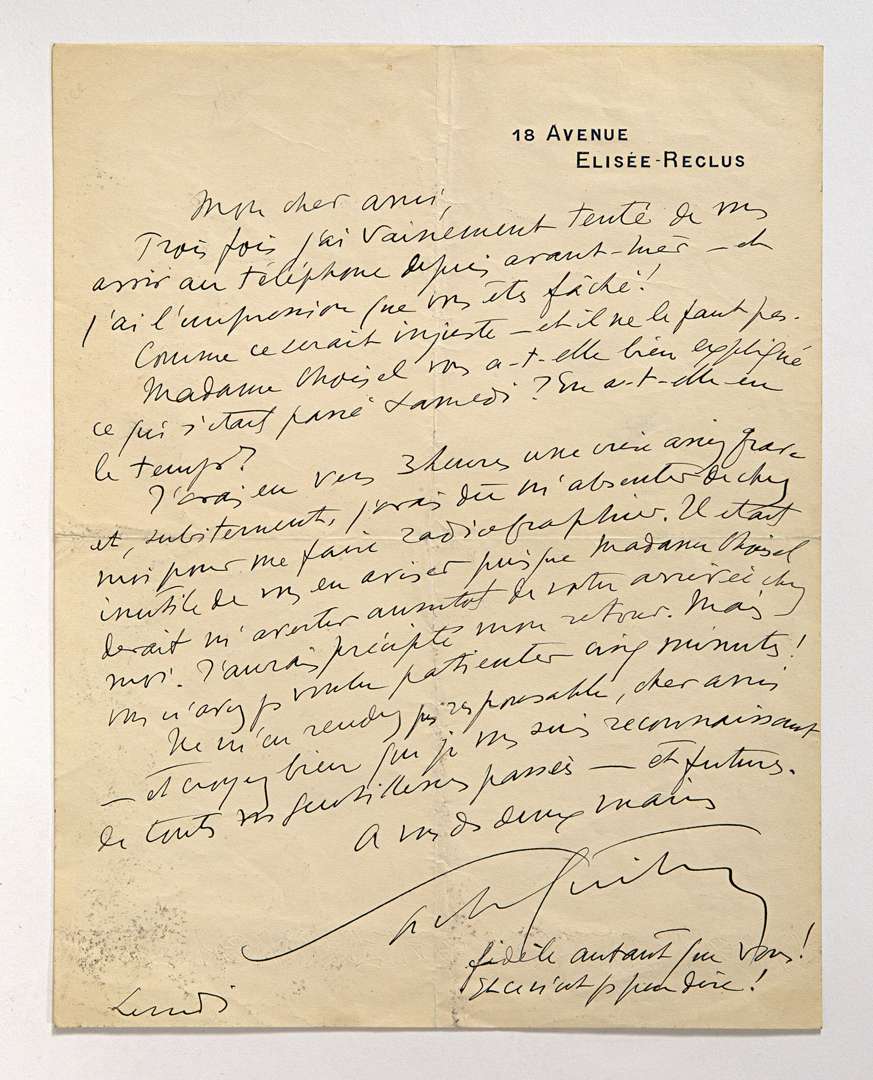 Lettre autographe signée "Sacha Guitry" [Paris], 18 avenue Elisée- Reclus, s.d.