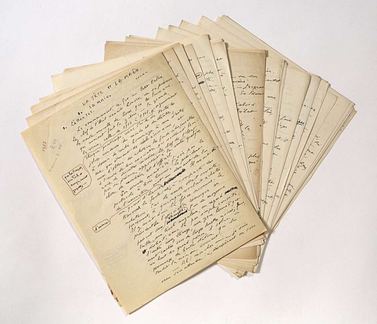 Manuscrit autographe incomplet de Claude FARRERE, intitulé "La Tête et la Main,roman" et datant de 1953. in-4. Avec ratures et corrections