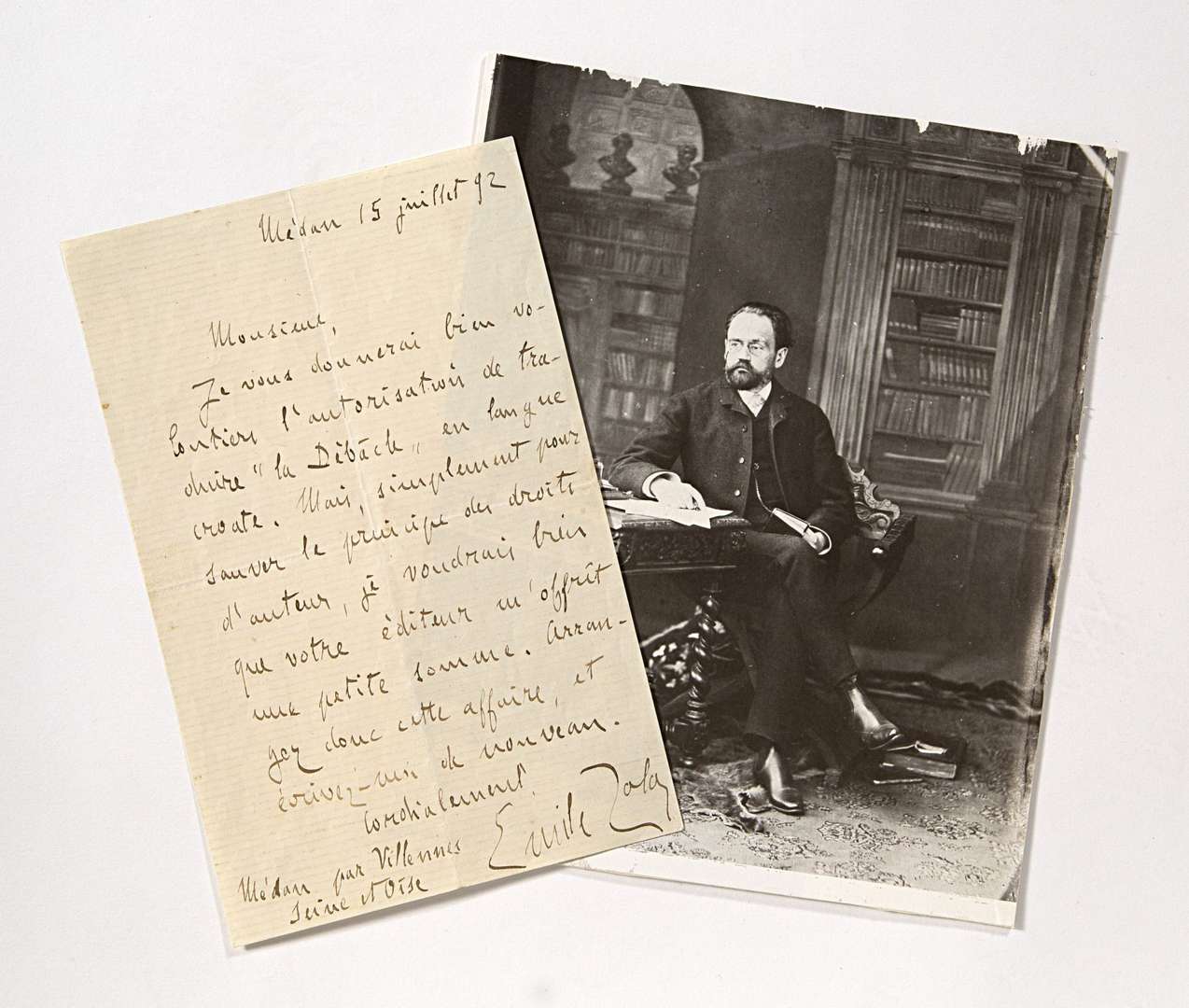 Zola règle des questions de traduction de son roman 'La débacle', paru en 1892 et qui achève la série des Rougon-Macquart : 'Je vous donnerai bien volontiers l'autorisation de traduire 'La débâcle' en langue croate. Mais, simplement, pour sauver le principe des droits d'auteur, je voudrais bien que votre éditeur m'offrit une petite somme'.