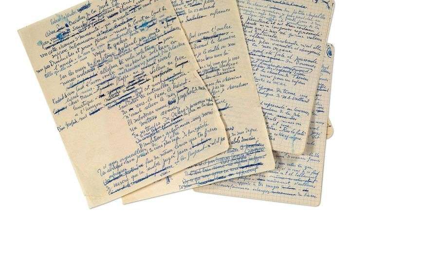 L'on joint un second manuscrit monogrammé par Bousquet, Portrait du peintre, 4 pages in-8 à l'encre bleue. Très nombreuses ratures. Avec retranscription de Claude Roulet corrigée par Rouault.