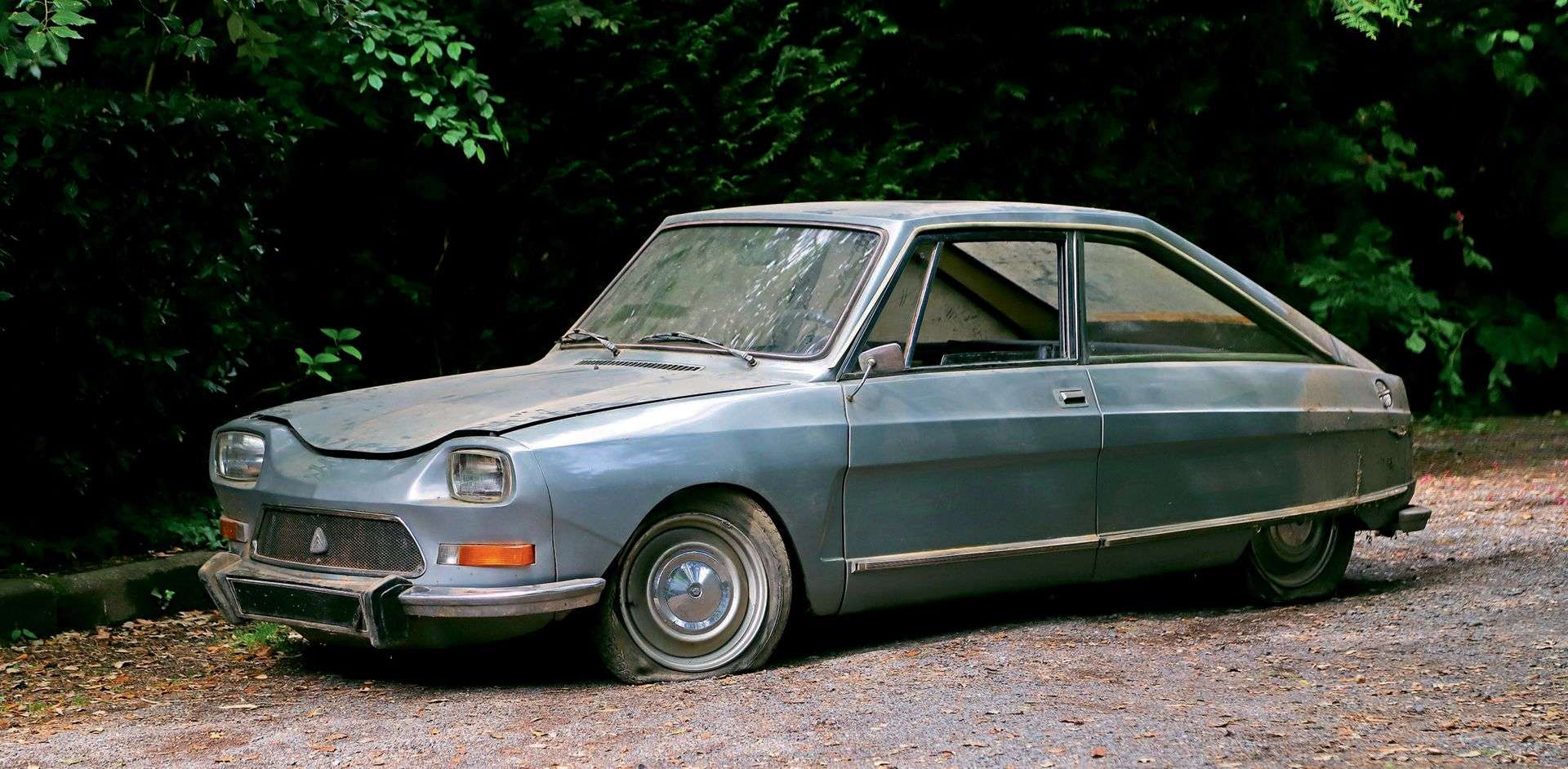 Dans les années 1960, Citroën, grand constructeur français, souhaite asseoir sa domination. En 1965 la firme historique du « quai de Javel » prend le contrôle de Panhard, dans l’espoir d’utiliser ses compétences et, surtout, son outil industriel, puisque la doyenne des marques françaises, disparait deux ans plus tard. En 1968, la firme aux doubles chevrons rachète le fabricant italien de voitures de sport Maserati, et produit la SM, arrivée dans une mauvaise conjoncture économique. La marque au trident sera revendue à Alejandro de Tomaso en 1975. Mais en 1967, les finances de Citroën sont encore bonnes, et ses dirigeants ont donc signé un partenariat avec l’allemand NSU pour construire des moteurs Wankel bi-rotor. En 1969, NSU, en faillite, est rachetée par Volkswagen pour quelques marks et le constructeur français est donc contraint de continuer seul dans l’aventure Wankel. Pour confirmer ses choix stratégiques, Citroën décide de monter son moteur Comotor (à un seul rotor) de 995 cm3 et 49 ch dans un prototype élaboré sur la base de l’Ami 8 par le carrossier Heuliez, avec une très futuriste carrosserie coupé 2-portes à l’arrière fuyant, type fastback, et une suspension hydropneumatique maison. Citroën décide de construire 500 prototypes, et de les confier en essai longue durée, à ses clients les plus fidèles, pour tester ce moteur en usage réel et décider de sa fabrication en grande série. Le moteur rotatif se montre très performant, montant si facilement dans les tours qu’il a fallu installer une alarme sonore lorsque le régime moteur dépassait 7 000 tr/min. En revanche, il se révèle peu fiable et difficile à démarrer. Le résultat est si décevant que Citroën rappelle les M35 pour… les détruire, et éviter une mauvaise publicité. Sur les 500 M35 que Citroën avance avoir construits (chaque voiture avait un numéro inscrit sur l’aile pour valider ce chiffre), il semblerait que seuls 267 ait vraiment vu le jour. Et une trentaine seulement auraient survécu jusqu’à aujourd’hui, ayant miraculeusement échappé au pilon. La M35 numéro de châssis # 00 EA 0061 fut offerte à Monsieur H., très bon client de la marque, au tout début des années 1970, peutêtre au moment même où les voitures étaient rappelées pour être détruites, puisqu’il en prit livraison à l’usine Citroën d’Aulnay, et qu’on la lui confia… sans carte grise. Il se fit même arrêter par la maréchaussée, plus intrigué par l’engin que par ses papiers, en revenant à son volant dans son Maine-et-Loire natal. Arrivé à destination, Monsieur H. remisa cette M35 sous un appentis, d’où elle ne ressortit qu’en mai 2021, après cinquante ans de sommeil. La voiture, bien que stockée dans des conditions peu optimales, se révèle à nous dans un état assez incroyable, avec une carrosserie (dans sa teinte gris métallisé propre au modèle), un châssis et un intérieur (dont les superbes sièges, qui rappellent ceux de la SM) particulièrement sains. Posée sur la terre battue à cause d’une suspension hydropneumatique non fonctionnelle, certains éléments, dont l’échappement, ont subi les affres du temps. L’autocollant spécifique indiquant que « Ce prototype M35 à moteur à piston rotatif est en essai longue durée entre les mains d’un client Citroën » est encore présent sur la lunette arrière. Pour des questions pratiques, des pneus neufs ont été montés depuis les photos qui illustrent le catalogue, et la voiture nettoyée.