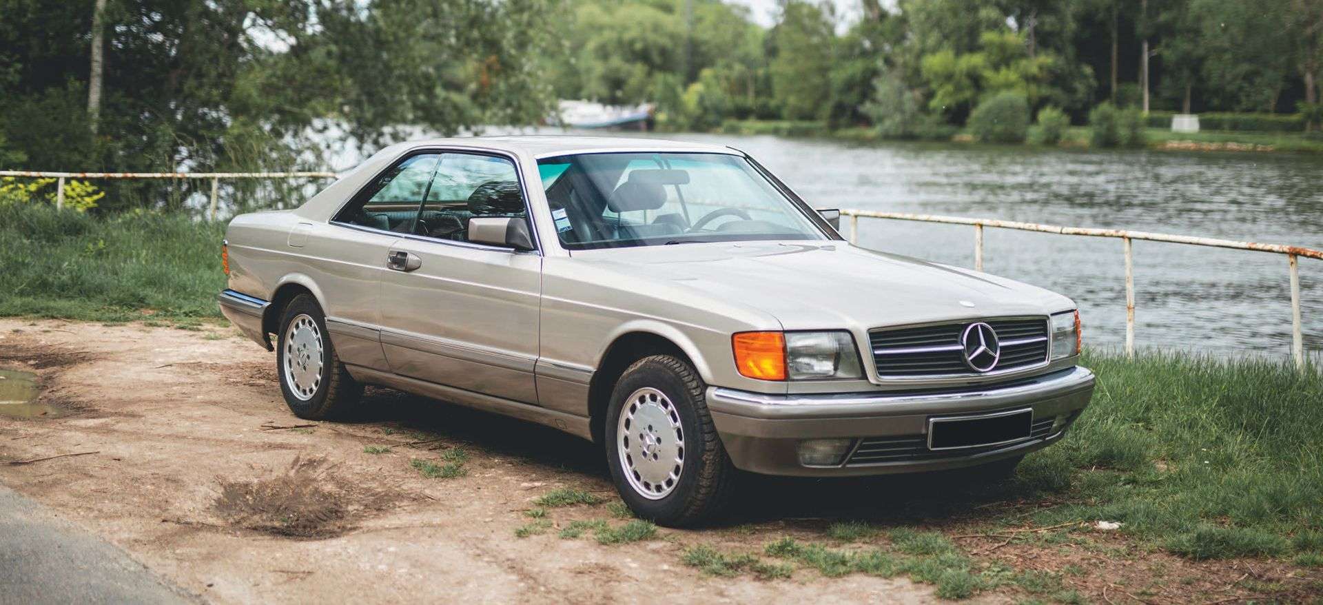 Pour la décennie 1970, Mercedes occupe le marché des coupés et cabriolets avec les fameuses R107 (roadster SL) et C107 (coupé SLC). Mais, dans cette génération-là, le coupé n’est ni plus ni moins qu’un roadster équipé d’un hard-top soudé, dont la ligne générale pâtit d’une plateforme trop courte (et d’un empattement trop long) et d’une élégance moindre. Pour les années 1980, les dirigeants de la firme de Stuttgart reviennent à l’essentiel, en concevant un coupé ex nihilo sur la base (raccourcie) de la berline W126. Et le coupé C126 sera pour beaucoup, comme le prétendent les brochures publicitaires, « la meilleure voiture du monde. » Le nouveau Sonderklasse Einsprintzung Coupé (SEC, classe S, injection, coupé) est dévoilé au Salon de Francfort de 1981. Pour son designer, Bruno Sacco (patron du design de la marque de 1975 à 1999), « cette voiture a le plus beau visage de toutes les Mercedes dont j’ai été le responsable du design. » En plus de cela (et contrairement à la R107 ou à la W126 berline), elle ne sera disponible qu’avec des moteurs V8, de quatre cylindrées différentes. A son lancement, la gamme se compose en effet des 380 SEC (204 ch) et 500 SEC (231 ch) | à partir de 1986, les normes anti-pollution et le montage de catalyseurs qui font perdre 20 % de la puissance donnent naissance à la 420 SEC (218 ch, en remplacement de la 380 SEC) et à la « grosse » 560 SEC (300 ch). Jusqu’en octobre 1991, 74 000 Mercedes C126 SEC sortiront des chaînes de production. La 420 SEC que nous présentons, qui marque l’entrée de gamme de cette légendaire Classe S coupé à partir de 1986, se trouve dans un état d’origine assez incroyable. C’est en 2016 que son propriétaire actuel s’en porte acquéreur. Il n’a depuis parcouru que quelques centaines de kilomètres à son volant. Une étiquette de vidange témoigne ainsi d’une révision intervenue à 135 106 km en décembre 2016, alors que la voiture totalisait le jour de notre essai 135 699 km. Il n’y a que très peu de documents accompagnant la voiture, mais ceux-ci nous permettent néanmoins de savoir que la voiture fut vendue neuve en Allemagne. Elle fonctionne parfaitement bien, et comporte encore sa roue de secours neuve et sa trousse à outils, complète, en toile d’origine. Un état rare qui ravira les amateurs de la marque et du modèle les plus exigeants.