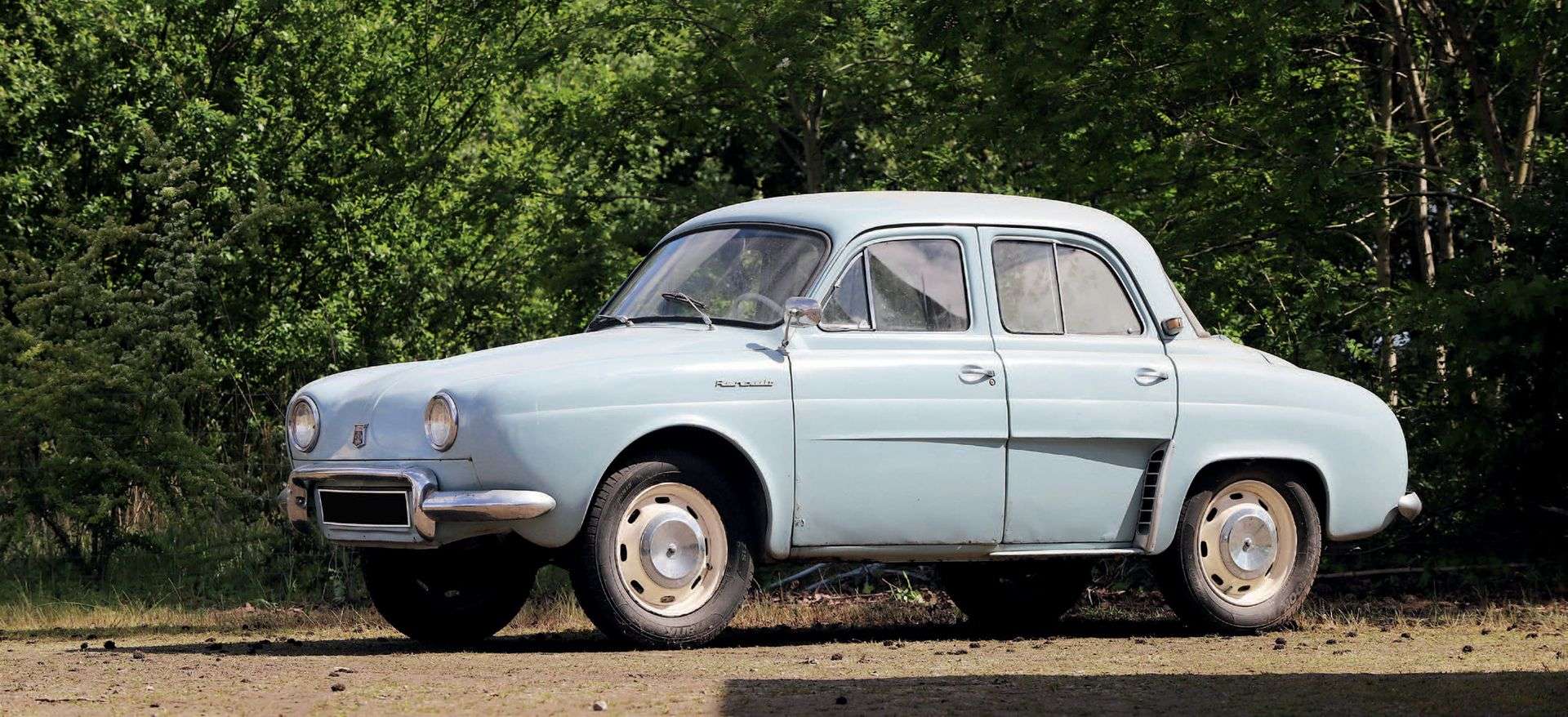 Notre exemplaire fut mis en circulation le 25 juin 1958. Il présente une peinture bleue azur fidèle à sa teinte d’origine. Son habitacle a été en partie restauré il y a de nombreuses années, il se trouve aujourd’hui en état d’usage. Des traces de corrosion sont à signaler au niveau du châssis et de la carrosserie. Au niveau mécanique, cette Dauphine est équipée d’un moteur 690-1 qui sera à remettre en route. On notera que celui-ci n’est pas bloqué. Cette voiture constitue un intéressant projet de restauration qui saura ravir un amateur de la marque au losange.