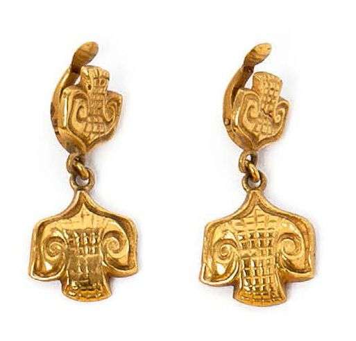 PROVENANCE Ancienne collection Denise Alleau Pair of dove gilt-bronze earrings. Signed 1 9/16 in.