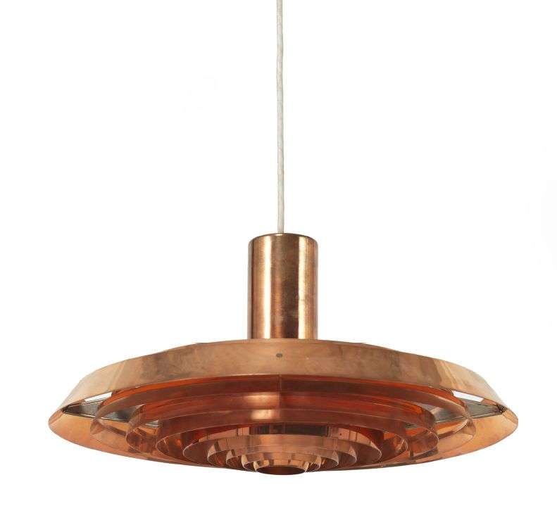 A Langelinie copper and white lacquered metal ceiling light by Poul Henningsen, Louis Poulsen edition.